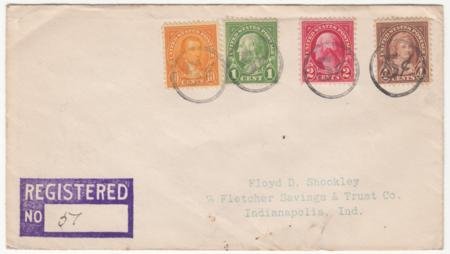 US Louisiana, Nickle 1930 Registered cover with 552, 554, 556, and 562 sent to Floyd Shockley. Each stamp with a single strike of 5c in circle fancy cancel 827 in black.