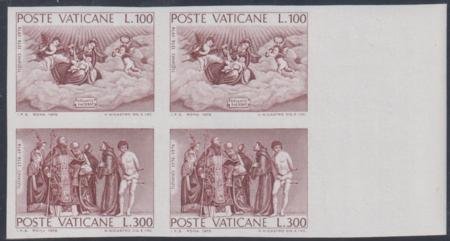 Vatican City 590 – 91a XF NH Imperf Proof in Brown Red – Right Margin Block of 4 cv $1,175 as ungummed