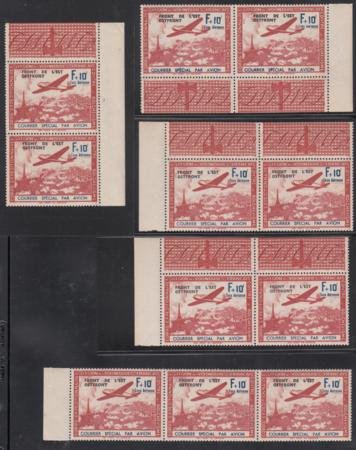 France 1942 Legion of French Volunteers Michel V Plate Varieties I-V in 4 Pairs + strip of 3 of plate variety 2 in different position from pair and unlisted variety noted but counted in cv as normal. €930 = $1020.