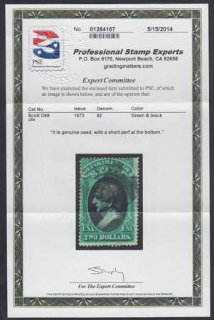 US O68 Officials Ave – Fine Used $2 State Dep’t Used – Short Perf Bottom; PSE cert, cv $3,000