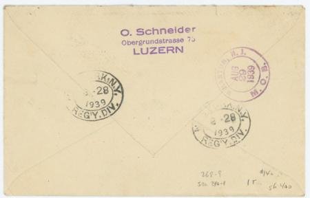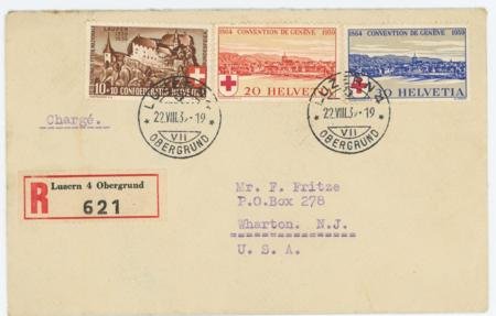 Switzerland 1939 (Aug 22) 268-269 FDC with B95 added Sent Registered from Luzern to USA. SBK 240-41 Sfr 400
