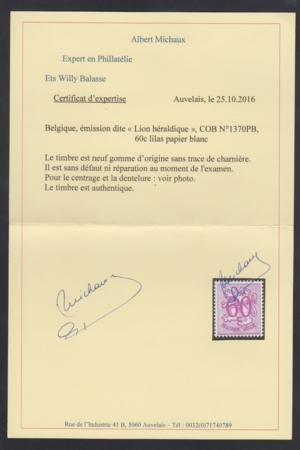 Belgium 430 var. VF Mint NH Rare White Paper Variety – Michaux Cert. cv $700
