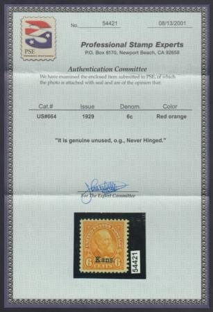 US 664 VF – XF NH Kansas Overprint Jumbo Margin – PSE Cert