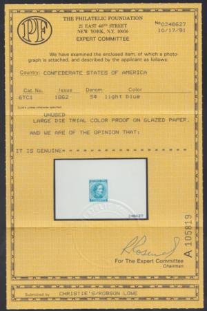 Duplicate of 08061 US CSA 6DPa Light Blue Die Proof on 93mm x 61mm Glazed Card Pristine + Fresh, cv $2,500 PF Cert calls this stamp 6TCI, which is no longer listed.