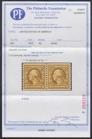 • US 457 Washington / Franklin XF Mint NH Pair - PF Cert cv $225