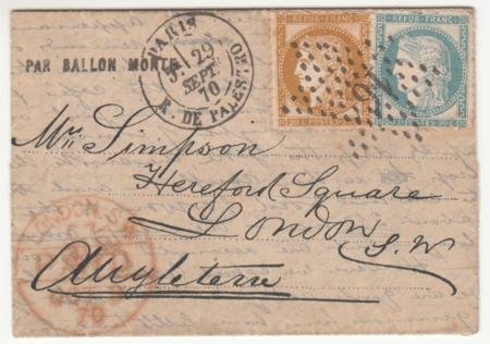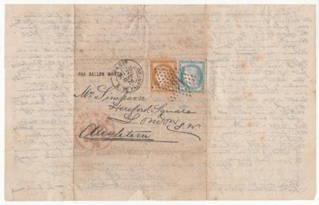France Ballon Monte Le “Celeste” a completely fabricated folded letter, even the stamps are forged. Scarce reference item.