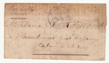 France Ballon Monte: Le “Ville d’Orleans”Fine complete folded letter, Nov 21, 1870 Paris (Passy) cancel, sent to Plombieres, carried 230 kg of mail. This correspondence was in the 60 kg bag of mail that was tossed overboard (later recovered) to keep the balloon from hitting the water. The stamp was soaked off in the process. 2016 Roumet cert. This is among the most desirable of siege balloon covers. Some light toning (BM33 €1,700)