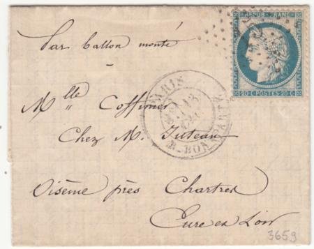 France Ballon Monte: Le “Ville de Paris” VF complete folded letter Paris cancel