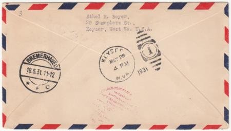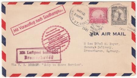 US 1931 (May 12) Catapult Cover, S.S. Bremen – Southampton. Ship to Shore Service, addressed to Bremerhaven Germany.