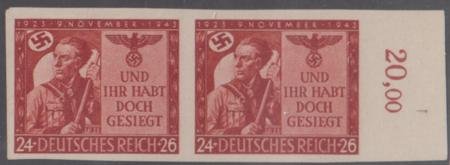 • Germany B250 VF Mint NH Signed Dr. Dentel - Margin Imperf Pair cv $825