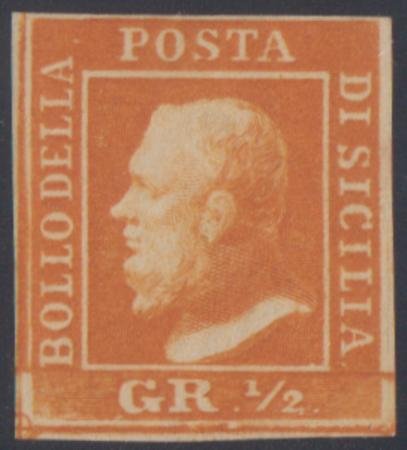 Italian States – Sicily 10h F – VF Mint Hinged Fresh OG – Bright orange, white gum cv $700