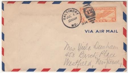 US 1934 (Jul 1) C19 on First Day of 6c Airmail Rate