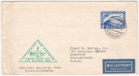 • Germany 1930 Baltic Sea Flight with C38 "Moon Over Zeppelin" Variety