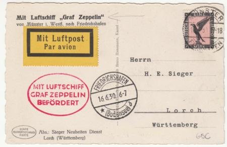 Germany 1930 Muenster Zeppelin Flight on lovely PPC