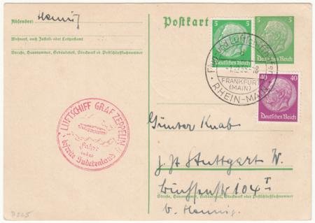 Germany 1938 (Dec 1) LZ130 in Sedentenland Flight Card. S.456 €30