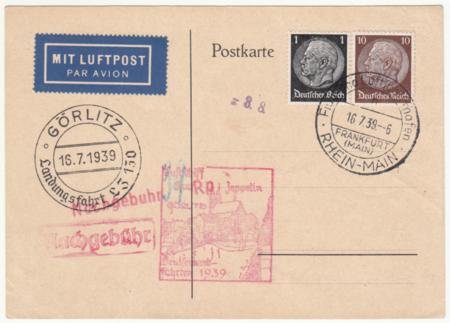 Germany 1939 (Jul 16) Zeppelin Flight Card to Goerlitz. S.458