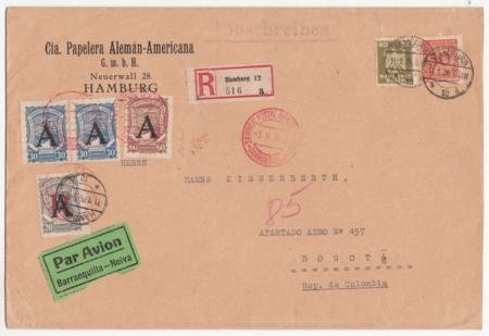 Germany 1926 Oversized Hamburg – Bogota SCADTA Commercial Cover