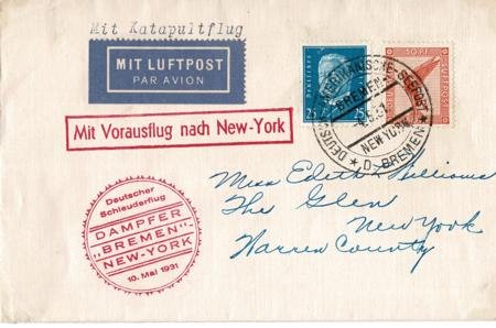 Germany 1931 Bremen Catapult Cover to New York