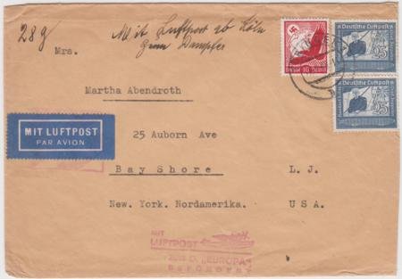 Germany 1938 (Sep) Catapult Flight To New York with C59 (x 2)