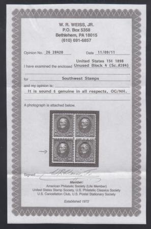 US 284 Bureau & Regular Issues Fine + Mint NH Pristine, Weiss Cert for Block cv $475