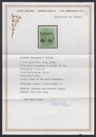 Iceland 52 F – VF NH Wielsen Cert cv $800