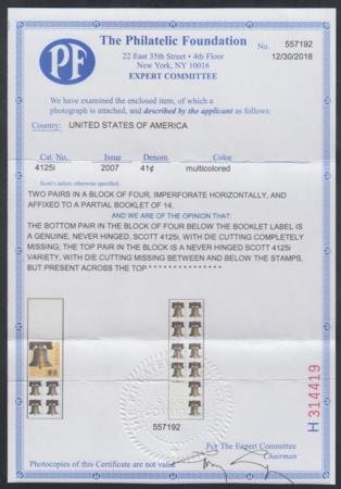 US 4125i Error VF Mint 2 Error Pairs in Partial Pane – (10 Mis-Die Cut Stamps on Reverse) One with Die Cutting at Top – 2 exist + the Variety – 2018 PFC