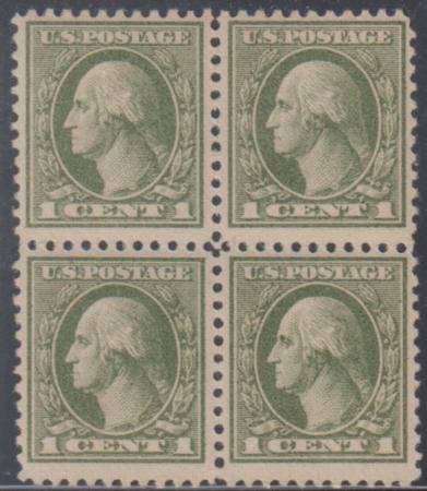 US 525 Washington / Franklin F – VF NH/LH Dark Green Block of 4 – half LH cv $70