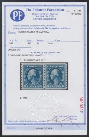 US 396 Washington / Franklin XF – Sup Mint Hinged New PFC – Graded XF – S 95 – Beautiful! cv $350