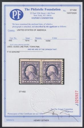 US 445 Washington / Franklin F+ Used Line Pair New PFC Light Town Cancel cv $2,750