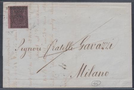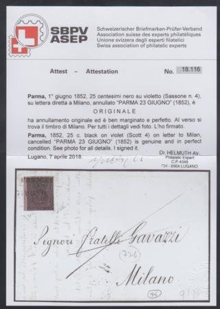 Italy Parma 4 VF Left Sheet Margin on Folded Letter to Milano, 1852 June 23 – Signed Diena + Avi with Avi Cert cv $575