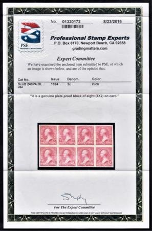 US 248P4 Essay XF Unused Block of 8 Card Proof PSE Cert cv $950