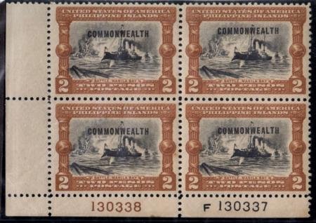 US Possessions – Philippines 444 VF – XF Unused LH LL Corner Plate # Block cv $87.50