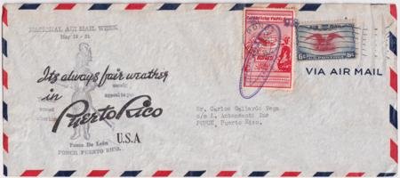 • US 1938 C23a Legal Sized Air Cover with Puerto Rico Semi-Officials Label