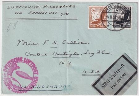 Germany 1936 6th North America Flight on Hotel Commercial Cover