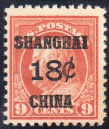 US Shanghai Overprint K9 F – VF NH cv $150