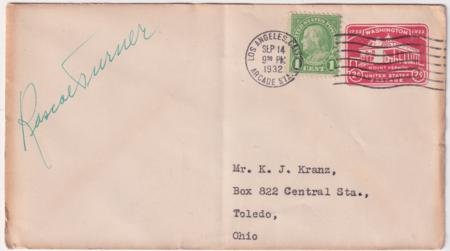 US 1932 (Sep 14) U525 Cover Signed by Roscoe Turner, Aviator. Vertical crease down center and toning on edges.