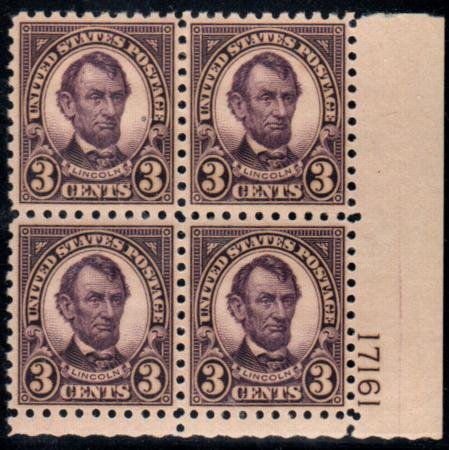 US 584 VF – XF Mint Hinged Plate Block – Unusually Well Centered cv $275