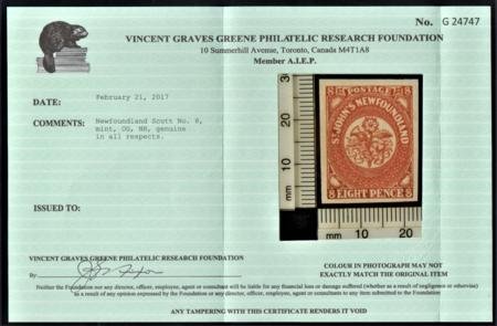 Newfoundland 8 XF Mint NH – Beautiful! Vincent Greene Cert – cv $900++