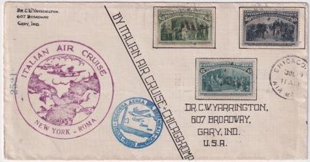 • US 1933 Balbo Chicago to Rome Return Flight with 238, 240, 243 Columbus Stamps
