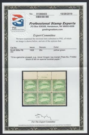 US 568a 1928 Special Booklet Paper PB Ave-F NH PSE Cert