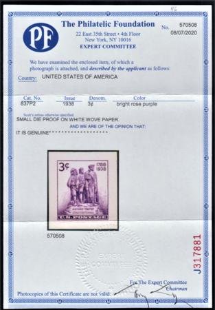 US 837P2 Superb Small Die Proof on White Wove – PF Cert
