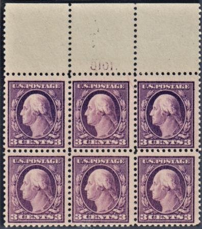 US 501 Washington / Franklin F – VF Mint NH Top Plate Block – Fresh! cv $240