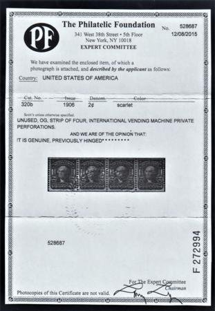 US 320b Vending Machine Coils VF-XF Mint LH Internation Vending Machine Co. PF Certs for Strip of 4