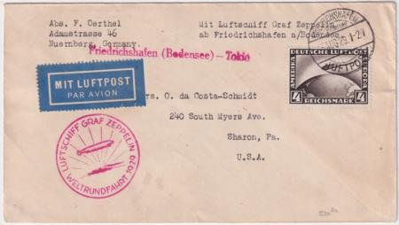 • Germany 1929 First Round the World Flight Cover with C37 to Japan