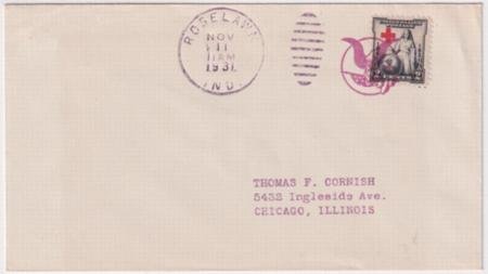 US Roselawn, Indiana 1931 (Nov 11) Cover with 702 tied by Eagle and Flag in Circle fancy cancel 990 in depot.