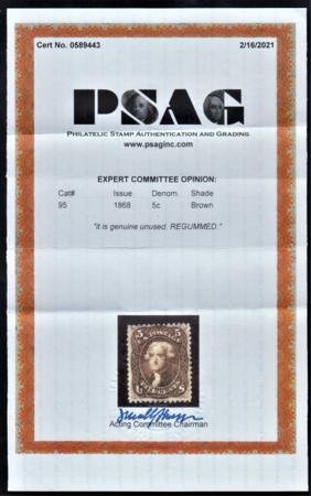US 95 Early Classics F+ Mint Regummed PSAG Cert cv $1,250
