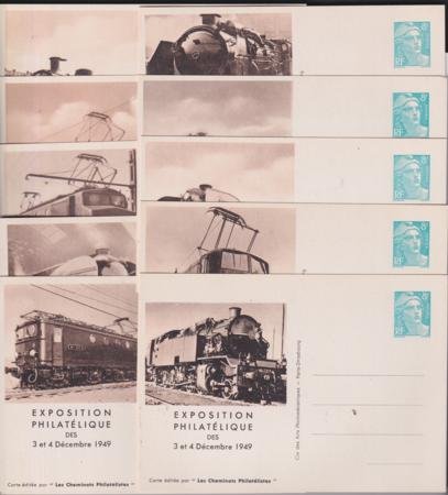 France 1949 Fantastic set of 10 mint Postal Cards, each showing a different Train! Just the normal card without the train has a high cv.