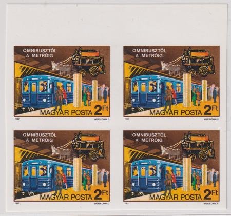 Hungary 1982 Scott 2758 Imperf Block of 4 with Margin, Train
