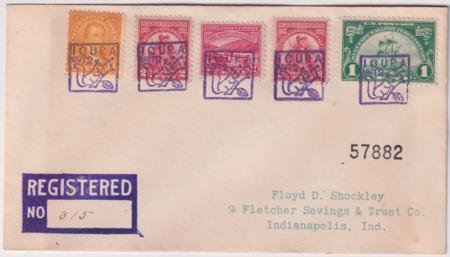 US Ed, Kentucky1930 (Jan 14) Registered cover to Floyd Shockley with 616, 642, 657(x2) and 681 Fancy Cancel Cover. Each stamp with a single strike of Squirrel in Box fancy cancel #271 in purple.