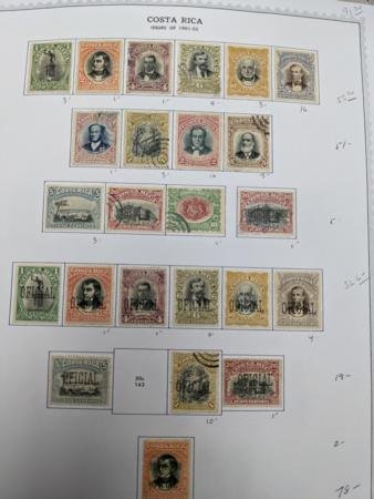 Costa Rica 1883-1992 Mint and Used Collection in Minkus 3-Ring Binder. Highlights include: 37a H, 59-68 Used+H, 87 Used, 201-8 H, 344-68 H, 334a NH, 337a NH, 375-6 NH, 377-84 NH, 427-9 NH, B2-7 H, C57-66 H, C94-102 H, C197-210 Used+H, C227-45 Used+H, C782-5 NH Total cv $2285.